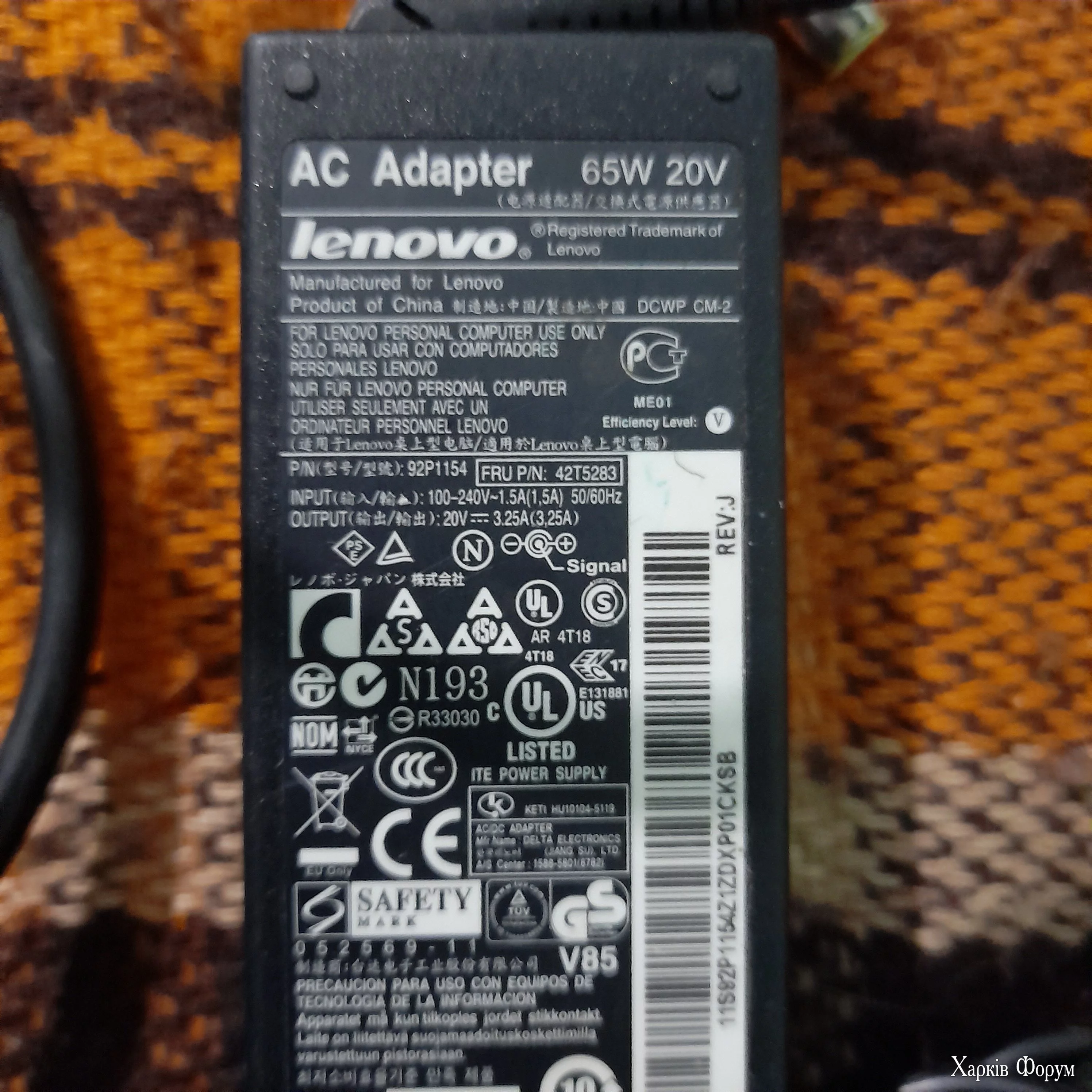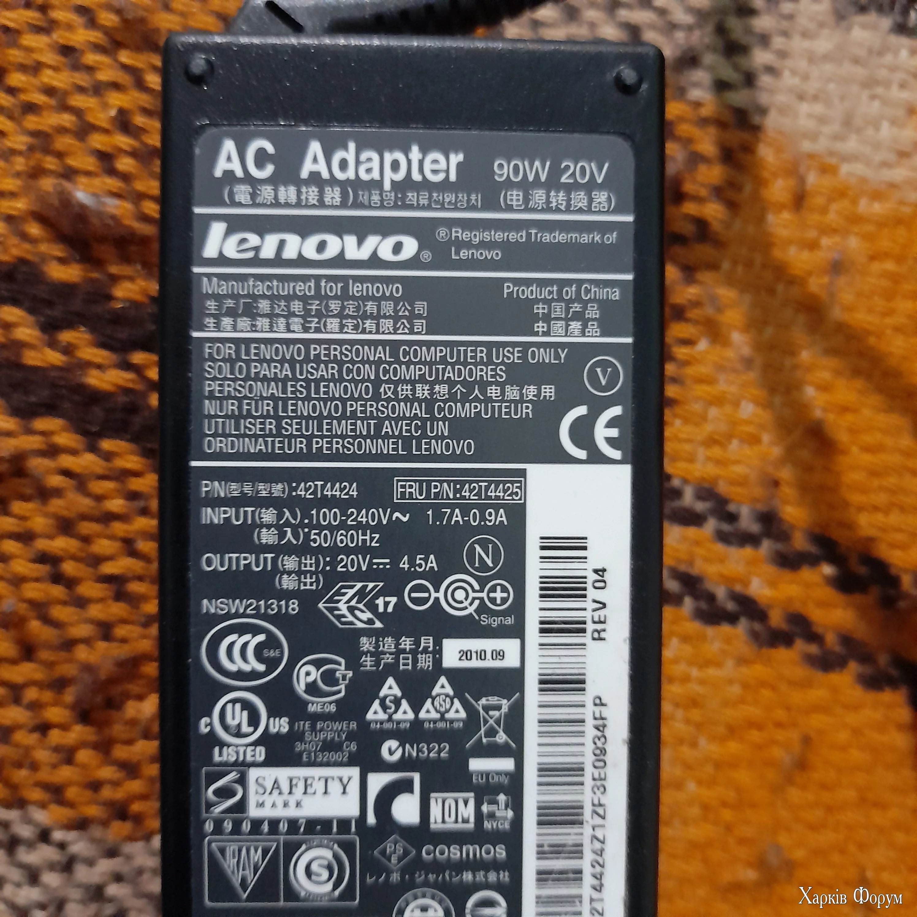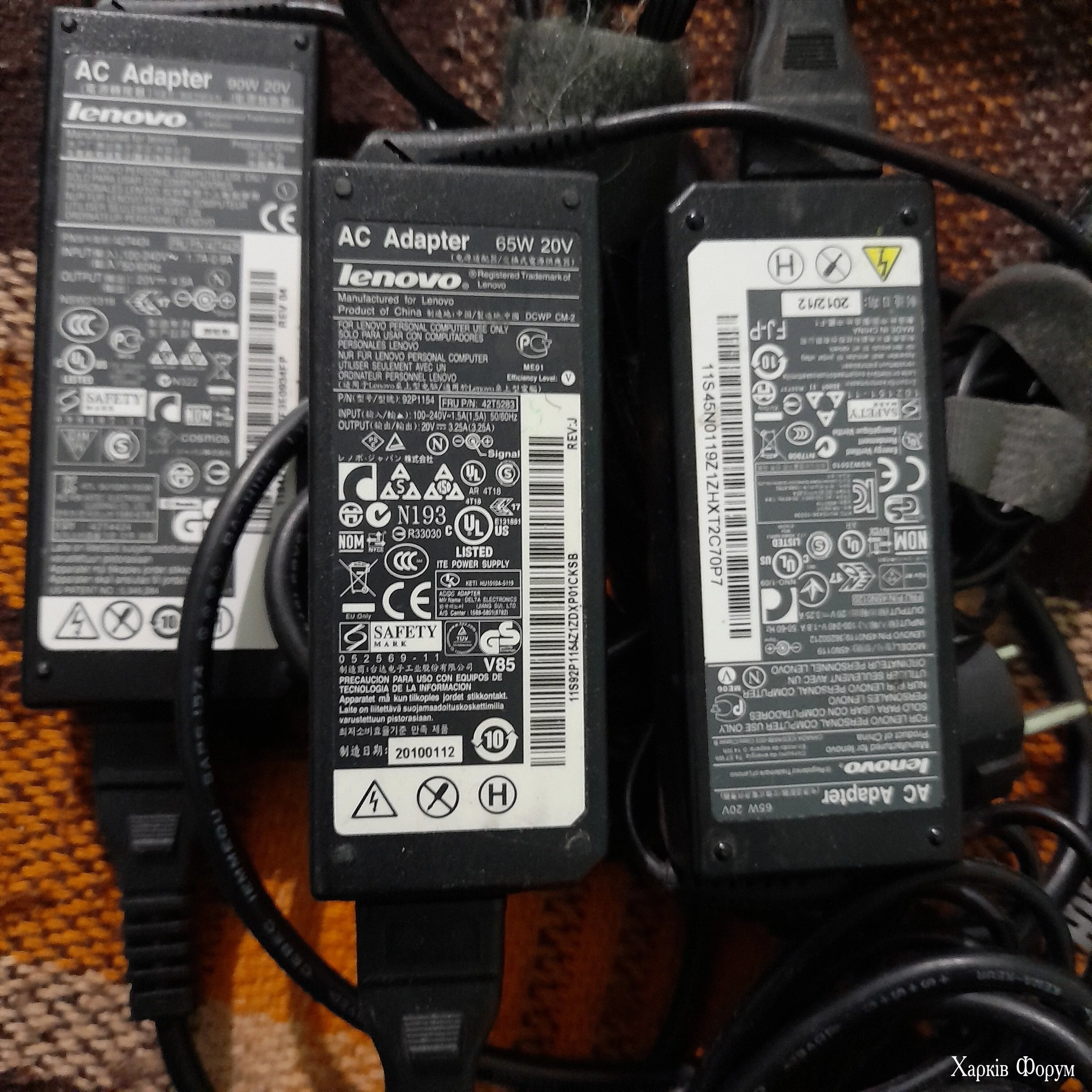АC Adaptor Lenovo 65W/20V, 90W/20V. (3 шт.) Характеристики на фото.