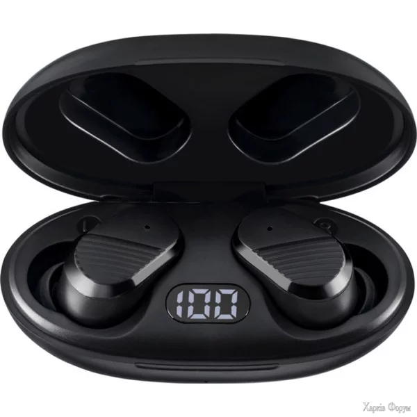 Інформативний дисплей на кейсі показує рівень заряду — завжди знаєте, коли потрібна підзарядка. Повна зарядка кейсу займає лише 1,5 години, а навушники працюють до 6 годин завдяки вбудованим акумуляторам ємністю 40 мАг.
