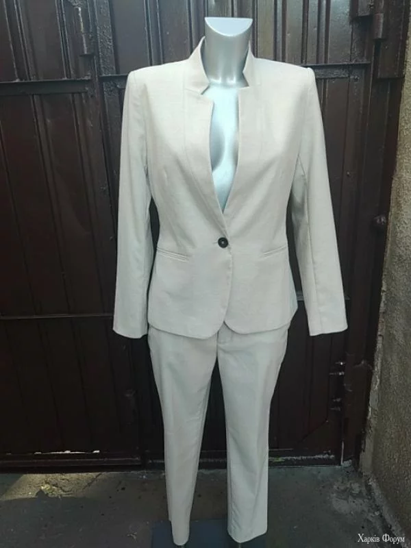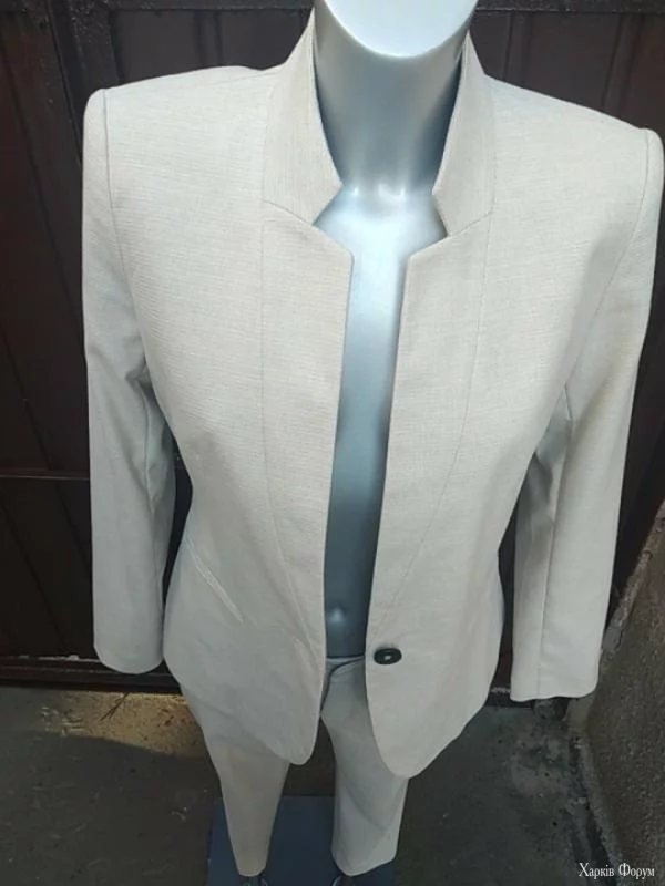 брючный костюм zara капучино лён летор 44-48 пиджак на лёгкой подкладке