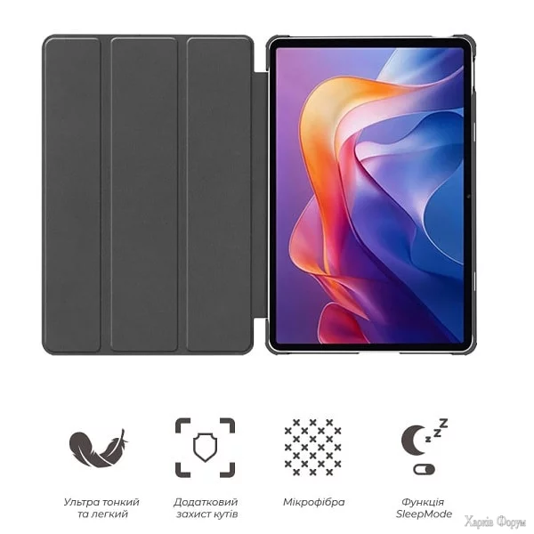 Чохол-книжка надійно захищає спланшет з усіх боків від подряпин, пилу і випадкових падінь. Усередині передбачений м'який матеріал, який дбайливо оберігає дисплей. Кришка легко відкривається і фіксується, забезпечуючи швидкий доступ до екрана. Чудовий вибір для повсякденного використання та ділового стилю.