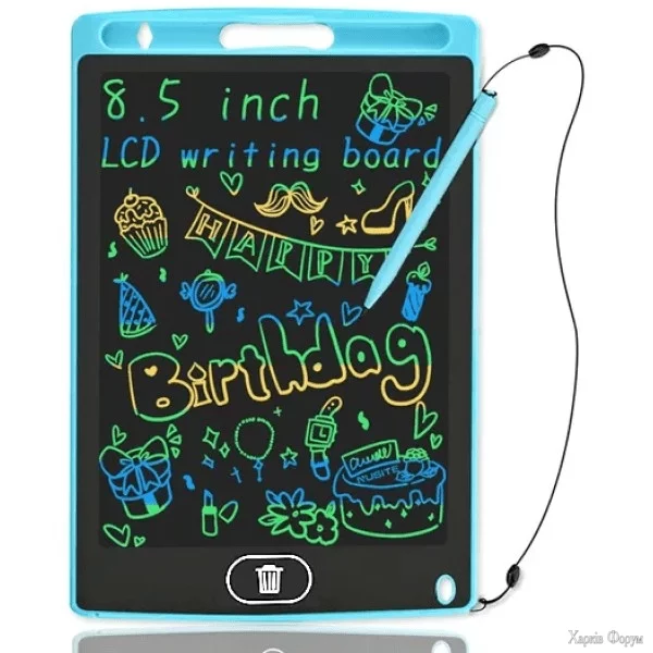 Кольоровий планшет Writing Table з діагоналлю 8.5 дюймів розроблений у стислому дизайні. Модель підійде для дітей та дорослих.LCD планшет може стати в нагоді як для малювання, так і запису тексту від руки, нотаток, креслень, ескізів та інших видів діяльності.