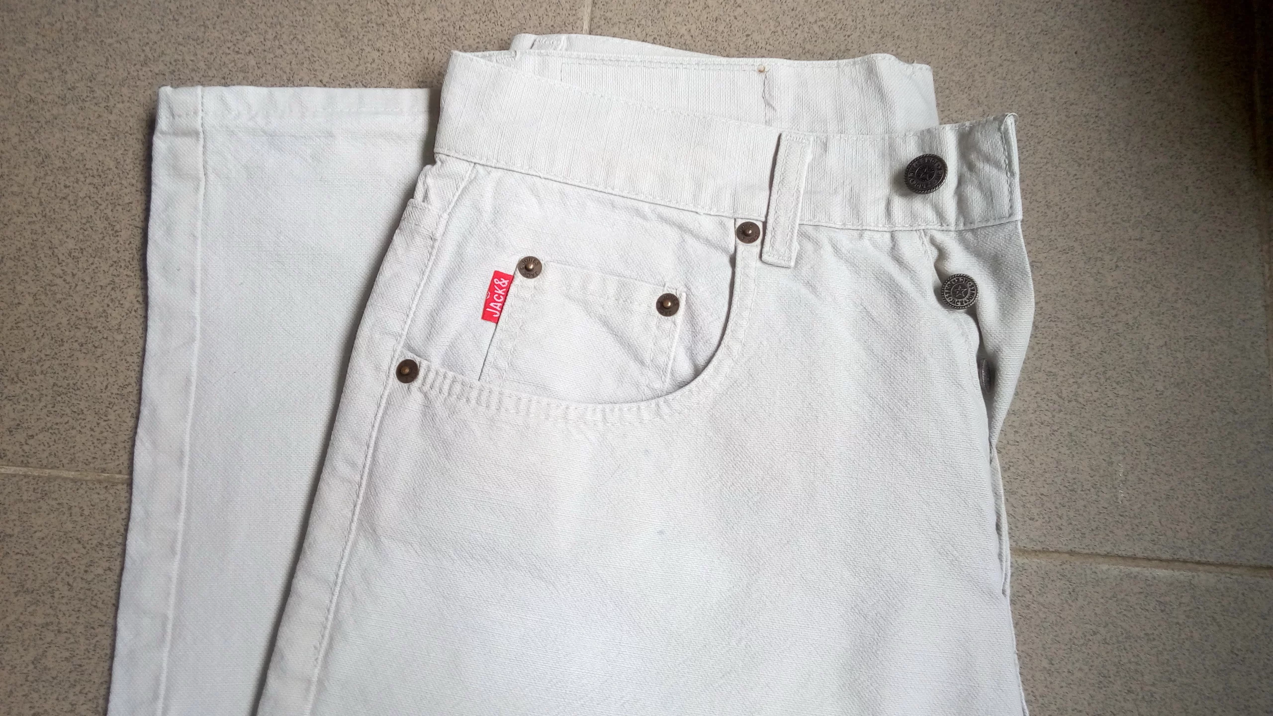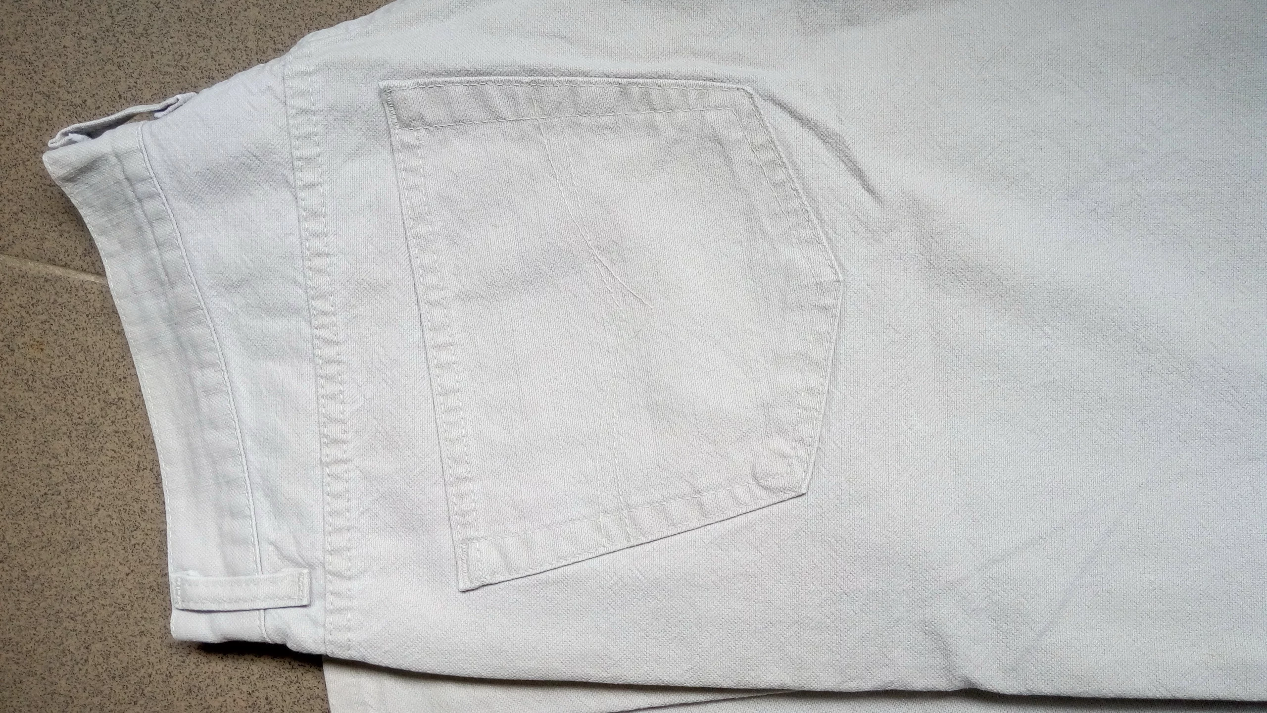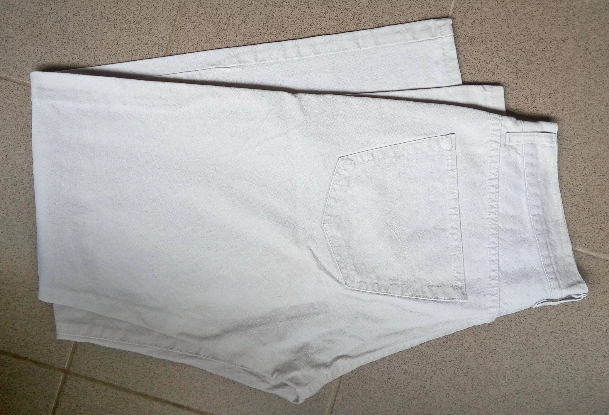 Джинсы Италия , светло - серые, плотный лён (джинсовая ткань) , на халявке есть почти незаметные точечки, видно по фото. Размеры : ПОТ- 41см, ПОБ- 57см , длина по боку - 110см , шаговая длина ( внутренняя) -83см.