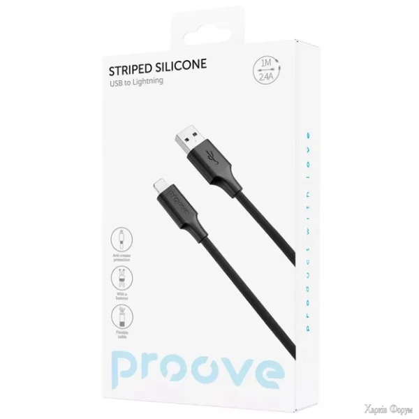 Особливості:Швидке заряджання: Підтримує потужність для швидкого заряджання ваших пристроїв Apple.Стійкий силікон: Виготовлений з міцного і гнучкого силікону, який запобігає заплутуванню і забезпечує довгий термін служби.Яскравий дизайн: Стильна смугаста текстура робить кабель не тільки практичним, але й естетично привабливим.Універсальна сумісність: Підходить для всіх пристроїв з роз'ємом Lightning.Додайте яскравості та надійності у свою зарядку з кабелем Proove Striped Silicone USB-A to Lightning - ідеальний вибір для сучасних користувачів!