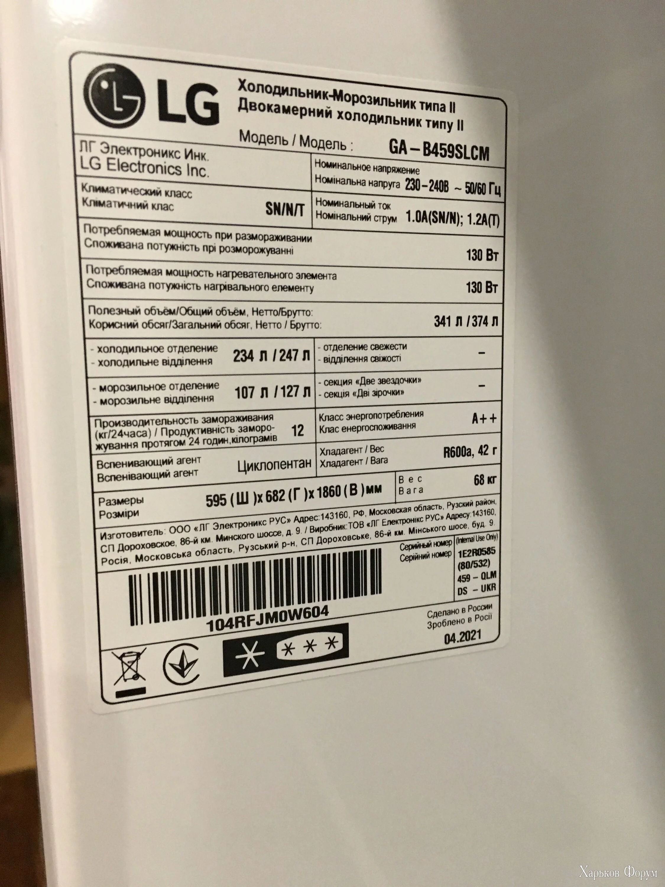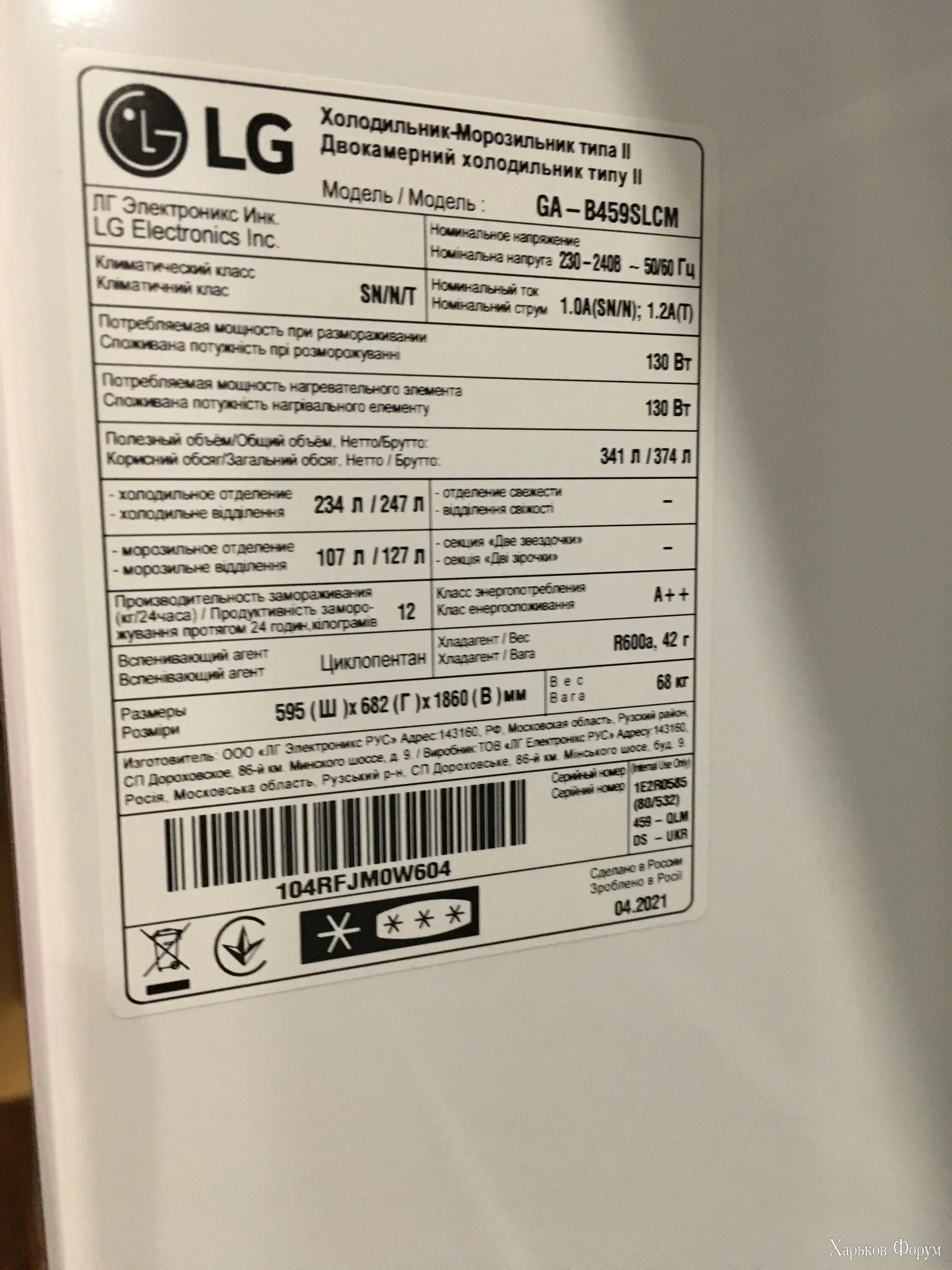 Холодильник LG GW-B459SLCM цена нового 23185, в работе был 4 месяца (куплен в октябре 2021г)