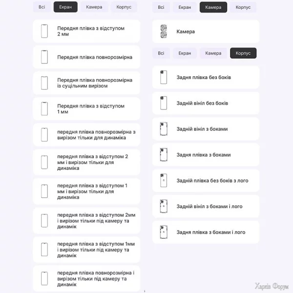 Поліуретанові захисні плівки доступні на безліч смартфонів, планшетів, фітнес-браслетів та смарт-годинників брендів Apple, Samsung, Xiaomi, Poco, Realme, Tecno та інші.
