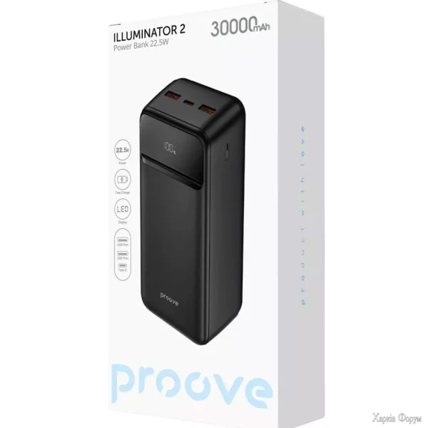 Power Bank Proove Illuminator 2 22.5W 30000mAh Black (PBIP30212201) (Код товару:41286)