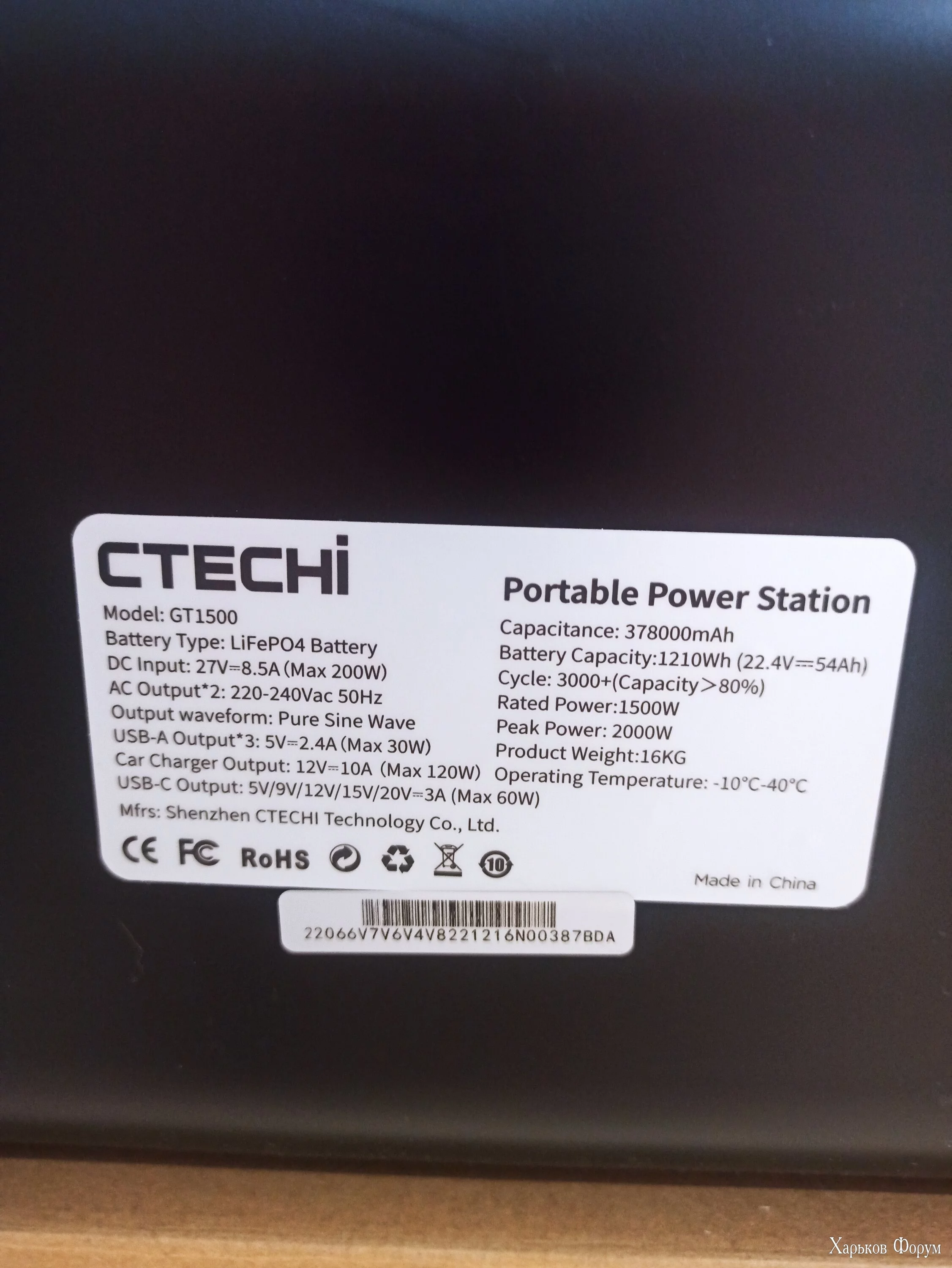 Вихід змінного струму: 2 × 220V 50Hz/60Hz, номінальна потужність 1500W, резервна потужність 1700W;