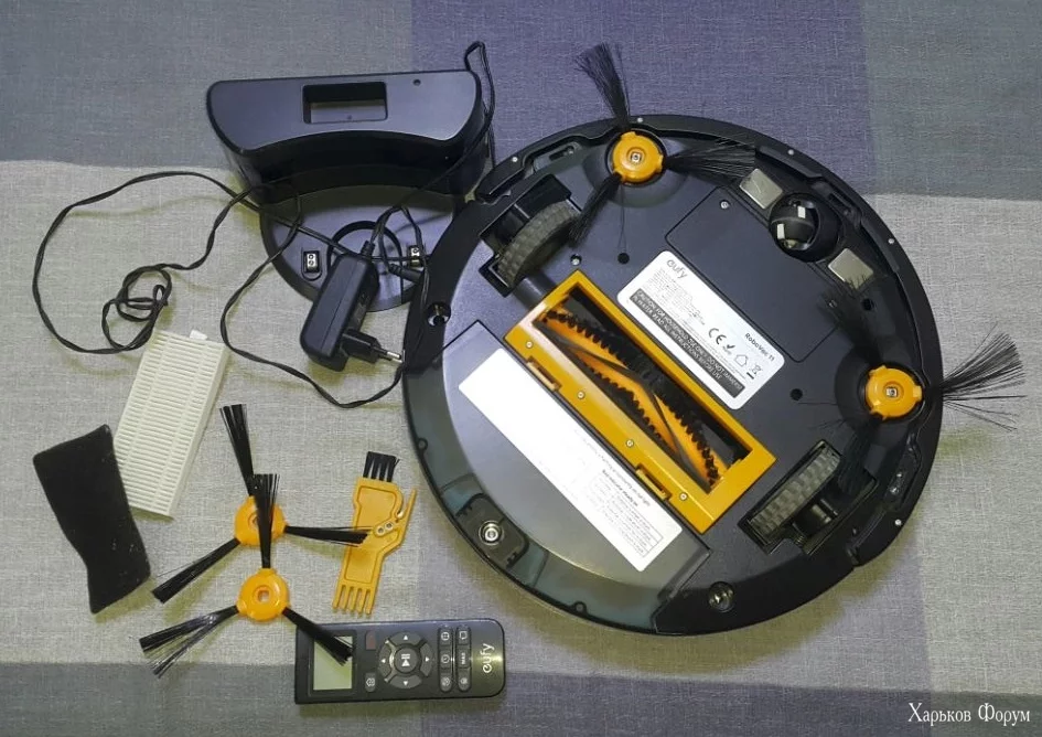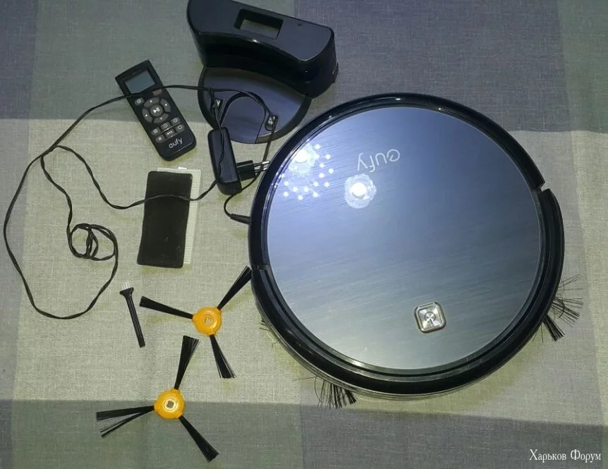 Робот-пылесос Eufy Robovac 11. В комплекте кроме самого пылесоса: пульт, зарядное устройства, база (также работает как виртуальная стена), щетка для чистки, запасные боковые щетки, hepa-фильтр и поролоновый входной фильтр. Нуждается в замене батареи. Все вместе - 1400 гривен. Запасные щетки и фильтры также могу продать отдельно за 100 гривен.