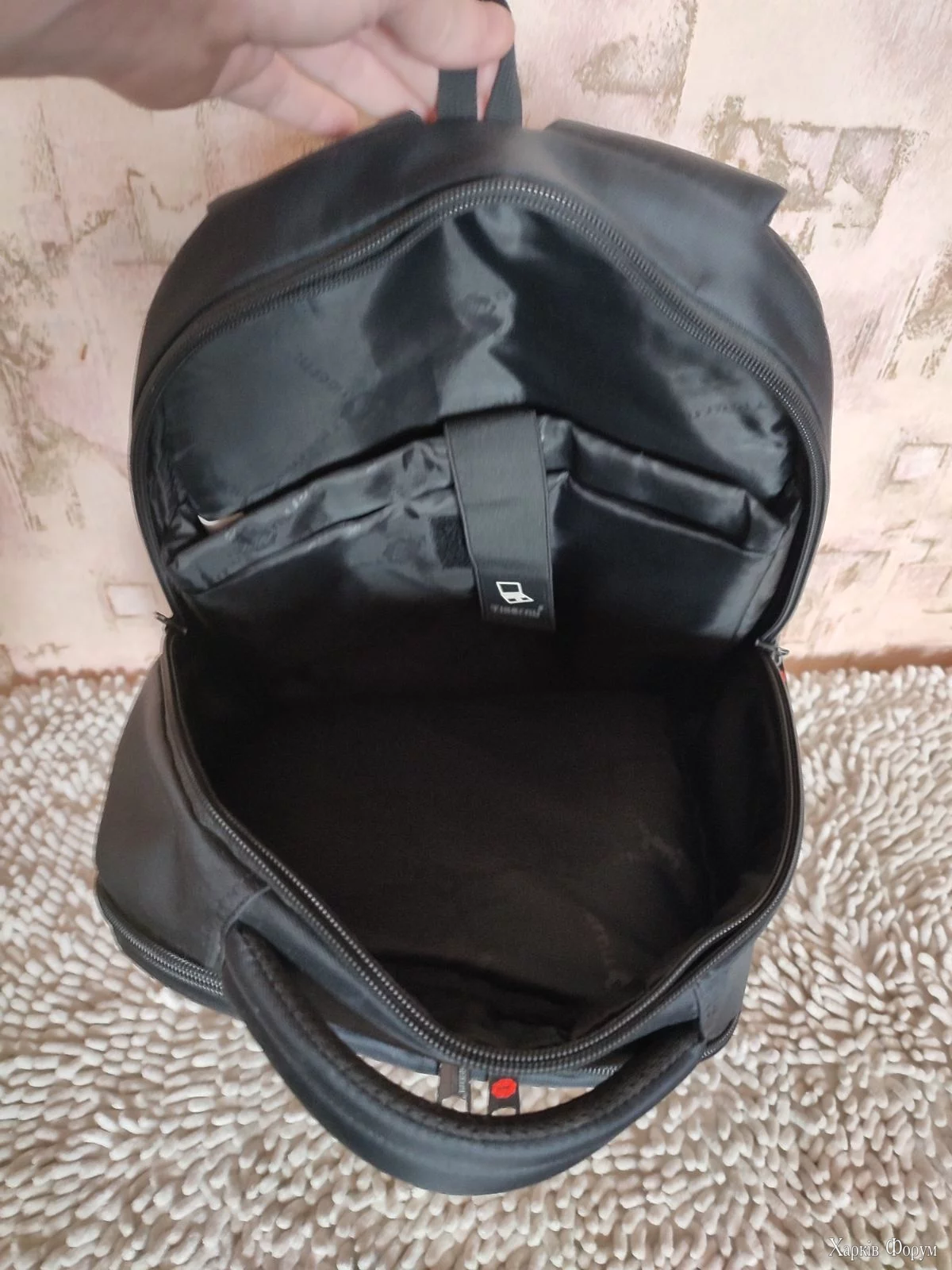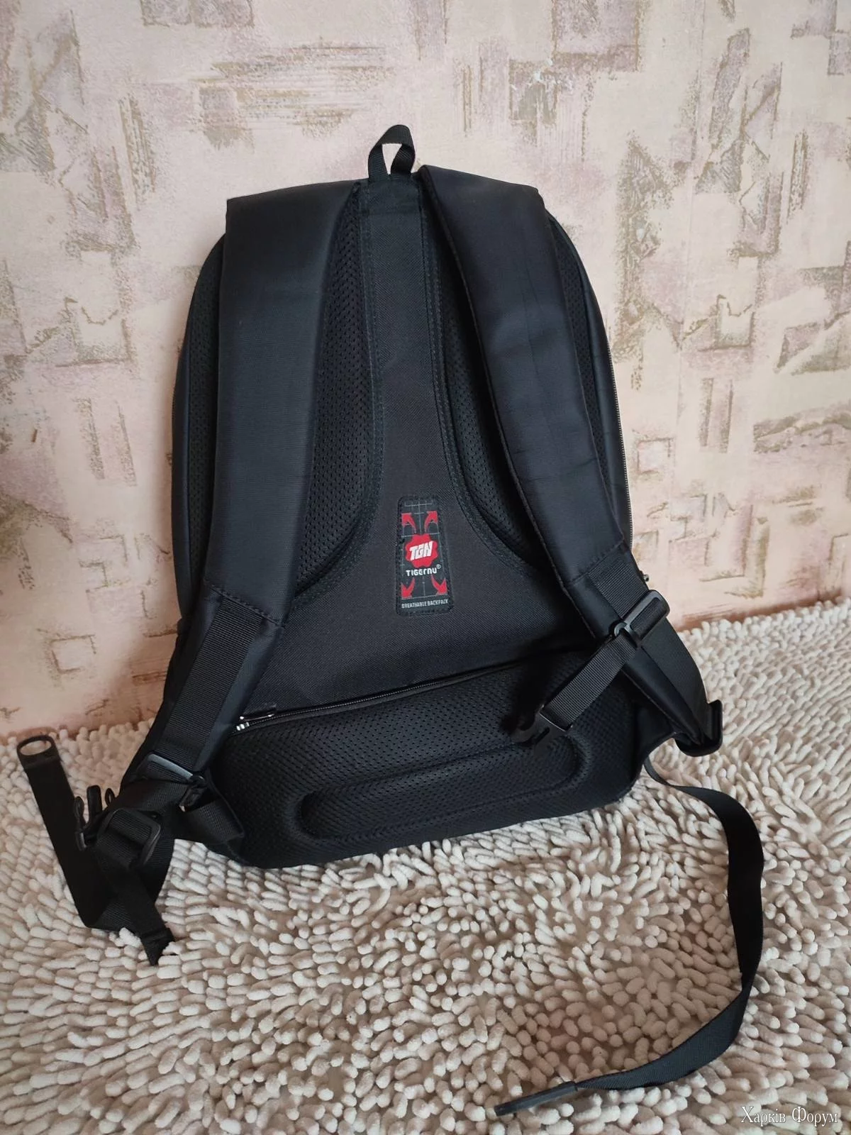 Спинку рюкзака Tigernu виготовлено зі спеціального спіненого матеріалу з ефектом пам'яті MEMORY FOAM, щоб рівномірно розподілити навантаження на спину для комфортного використання.