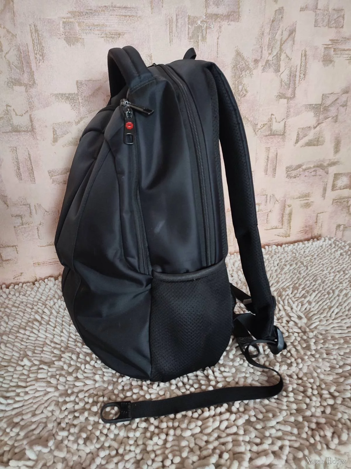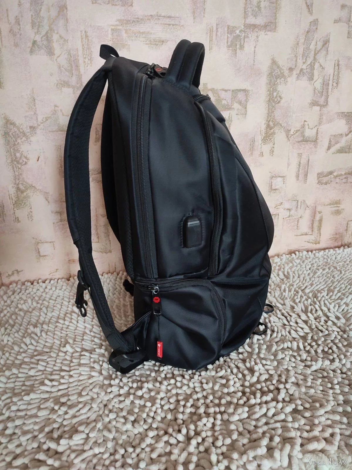 1 велике відділення з відсіком для ноутбука розміром до 15.6", зручний органайзер, з боків одна кишеня на змійці з гумкою-фіксатором, одна сіточка. На спинці потайна кишеня на змійці.