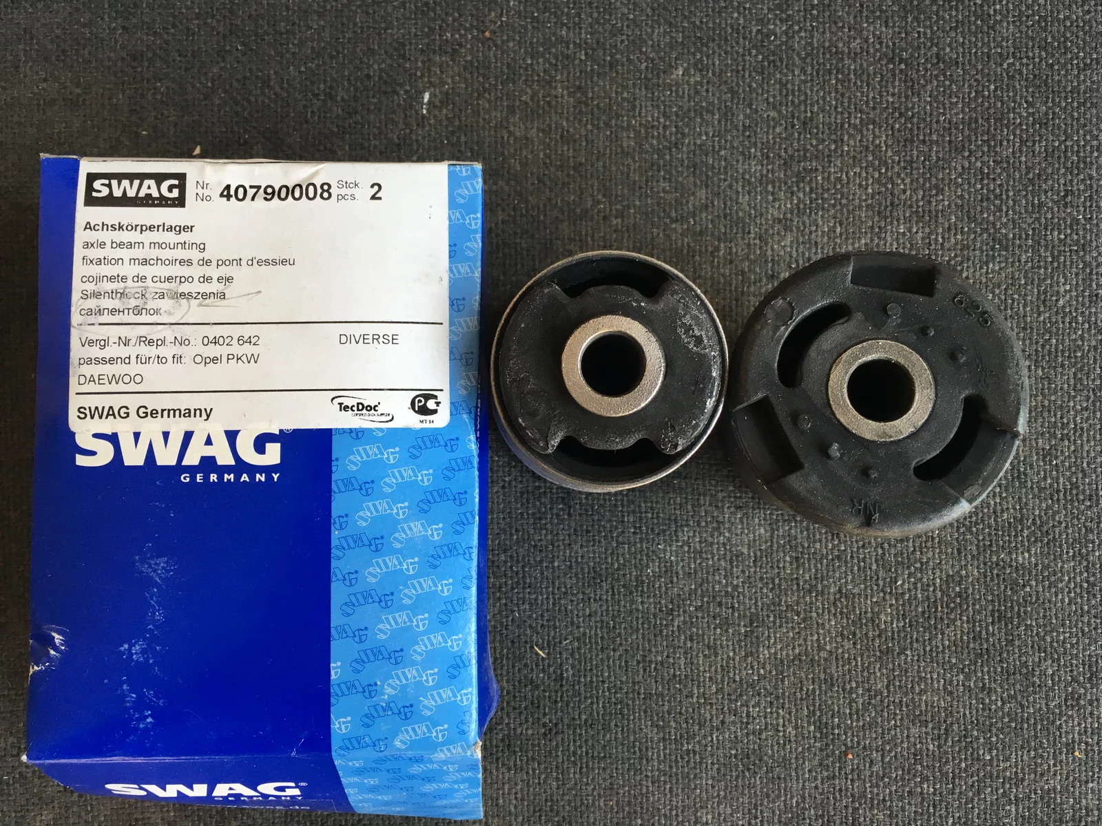 12.) Сайлентблоки задней балки/подрамника (2шт). "SWAG" (Германия). Артикул:40790008. Цена 440грн за оба.