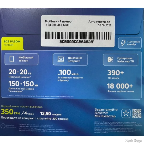 Мобільний інтернет – 40 ГБДзвінки на Київстар - БезлімДзвінки на інші мобільні, міські та за кордон: Австрія, Бельгія, Данія, Індія, Іспанія, Італія, Канада, Молдова, Німеччина, Норвегія, Польща, Румунія, США, Чехія, Франція, Швеція - 300 хв.