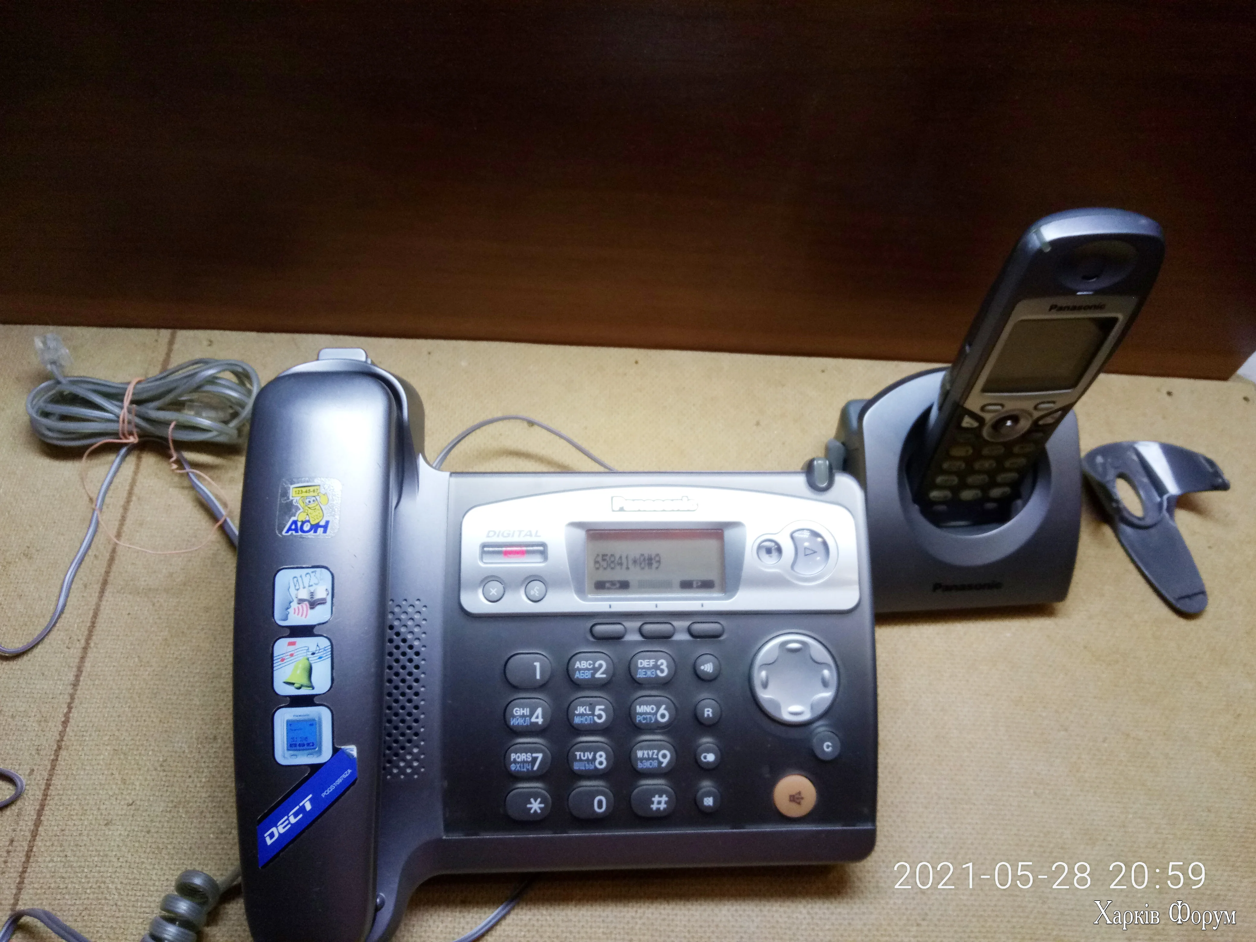 Проводной телефон и трубка DECT в комплекте. База с проводной трубкой.