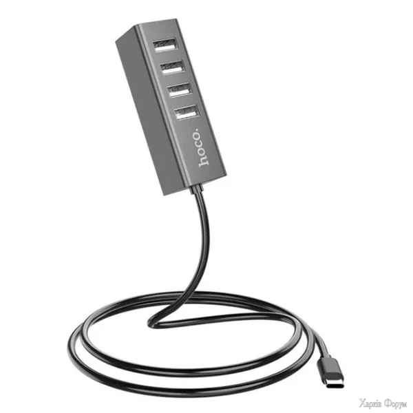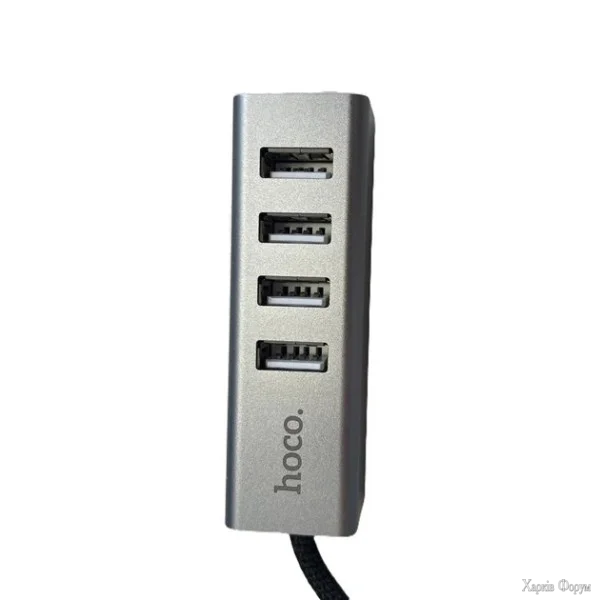 USB-хаб HOCO HB1A (Black) — компактний розгалужувач з 4 портами USB 2.0 для підключення миші, клавіатури, флешок та іншої периферії. Корпус з алюмінієвого сплаву, плетений кабель, швидкість передачі даних до 480 Мбіт/с.
