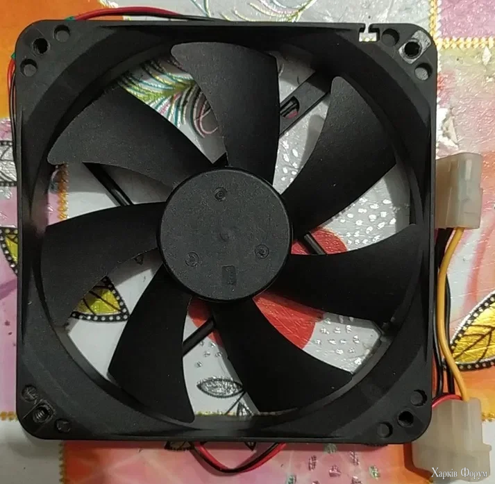 Вентилятор может быть использован для установки в компьютерный корпус или в иных целях. Дует сильно, шум издаёт, без треска и люфта (смазан силиконом). Диаметр 120 мм, остальные характеристики не известны. Подключение через молекс (12 вольт).