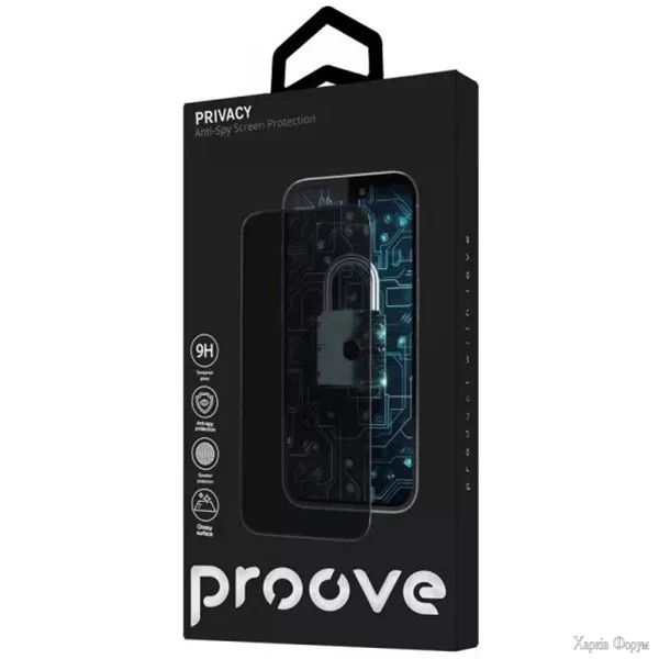 Продається Реклама Захисне скло Proove Privacy для iPhone 14 Pro Max Black (PGPPRI14PM01) (Код товару:38365)