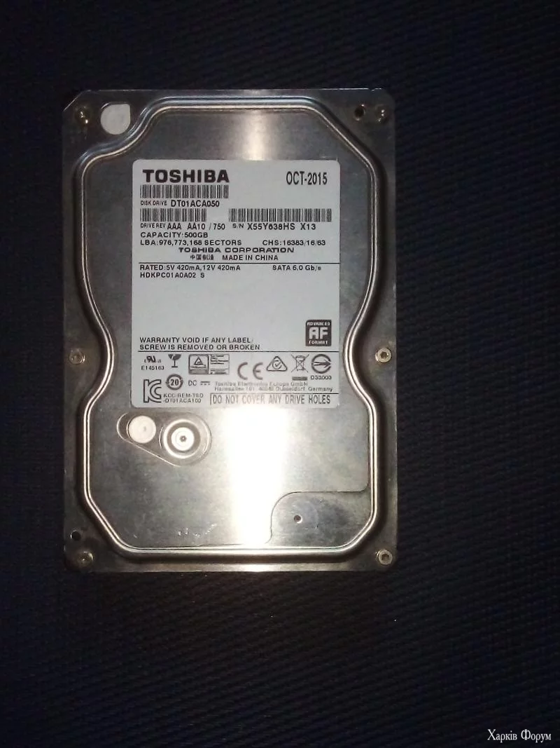 3. Жесткий диск Toshiba 500GB 7200rpm 32MB DT01ACA050 3.5 SATA III. Б/у. 400 грн.