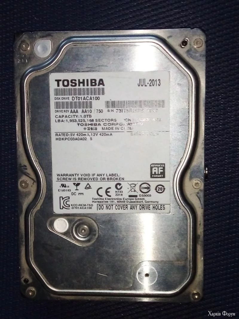 2. Жесткий диск Toshiba [1TB 7.2K 3.5 SATA] (DT01ACA100). 900 грн.