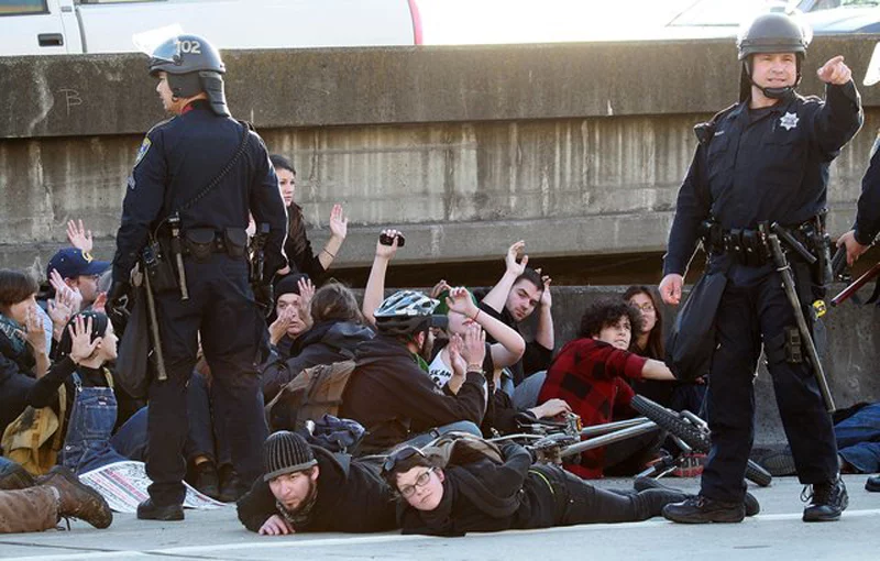 На фото разгон акции протестов в США(с последующей инкриминацией -неподчинение властям-демонстрация была о намерениях и привлечения внимания) студентов .