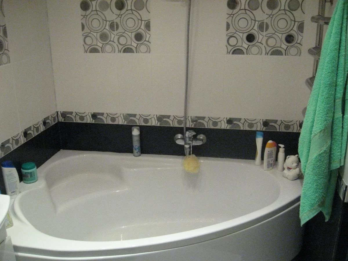 Я сам дизайн делал. Покопался в нете для поиска програмулины нужной, потом по всем магазинам и супермаркетам. выбрал плитку, закинул изображения плитки с нета и размеры ванной в програмулину, посидел пару дней (пока разобрался с прогой, потом с самим дизайном).И вот результат на фото.