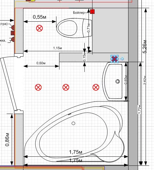 Вот размеры ванной (все планы делал в Визио, очень правильная софтина для схем).