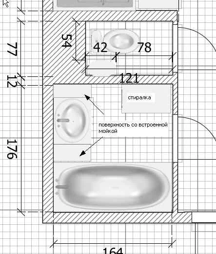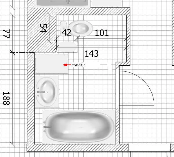 Но, хочется: хотя бы визуально увеличить пространство С/у - посему картинка 3