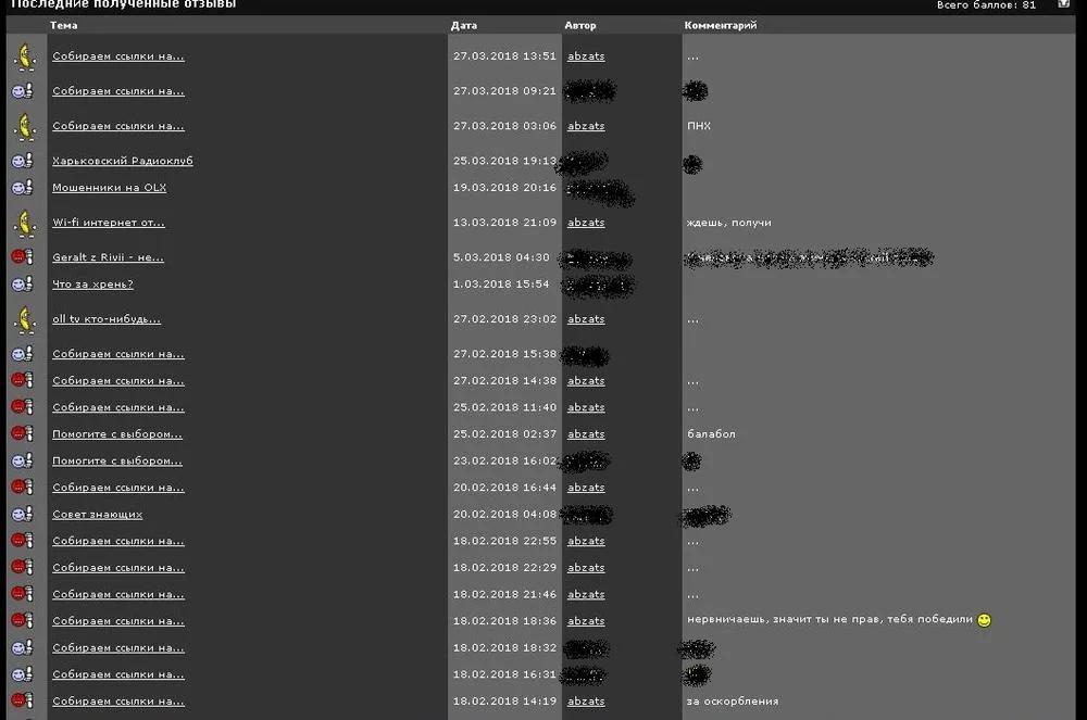 вот еще один экран, сравните оскорбления и даты кто начал эту войну и кто выдает пачками - все минуса от этих двух персонажей, которые в теме еще имеют совесть жаловаться, нечего пенять на зеркало, чуваки