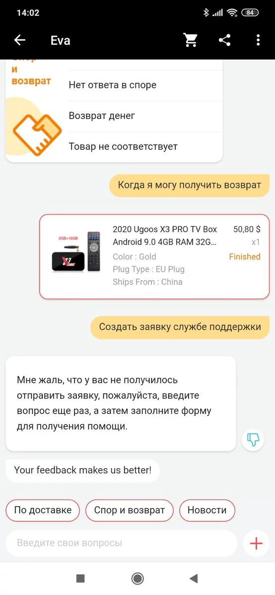 ну, я споры по своим посылкам создавал еще в мае. бабки вернули быстро. сейчас, я думаю, что они морозят покупателей, потому что много жалоб от покупателей, очень много. многие выкупили тему, что можно ***** китайцев на рефанды и **** из-за просрочки с доставкой. я на алике **** что то покупать уже, перешёл на еБай там защита покупателя мощная очень и почти вся китайская ***ня уже и там продается. я даже алишное приложение снес кхуям так как ******* уведомлениями типа приходипокупай.