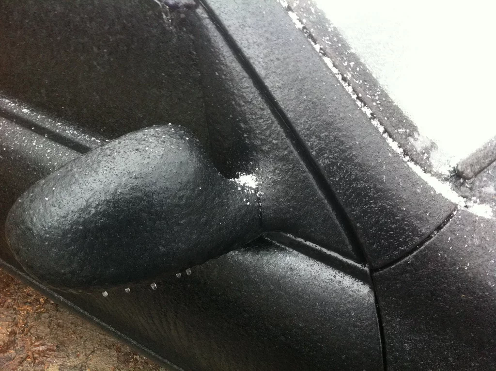 ручку отковырял, даже дверь открыл, на стекло полил, еще полил, через 5 минут понял что ждать нечего и начал проковыривать лед, потом соединять скребком проковырянные дырочки до стекла.