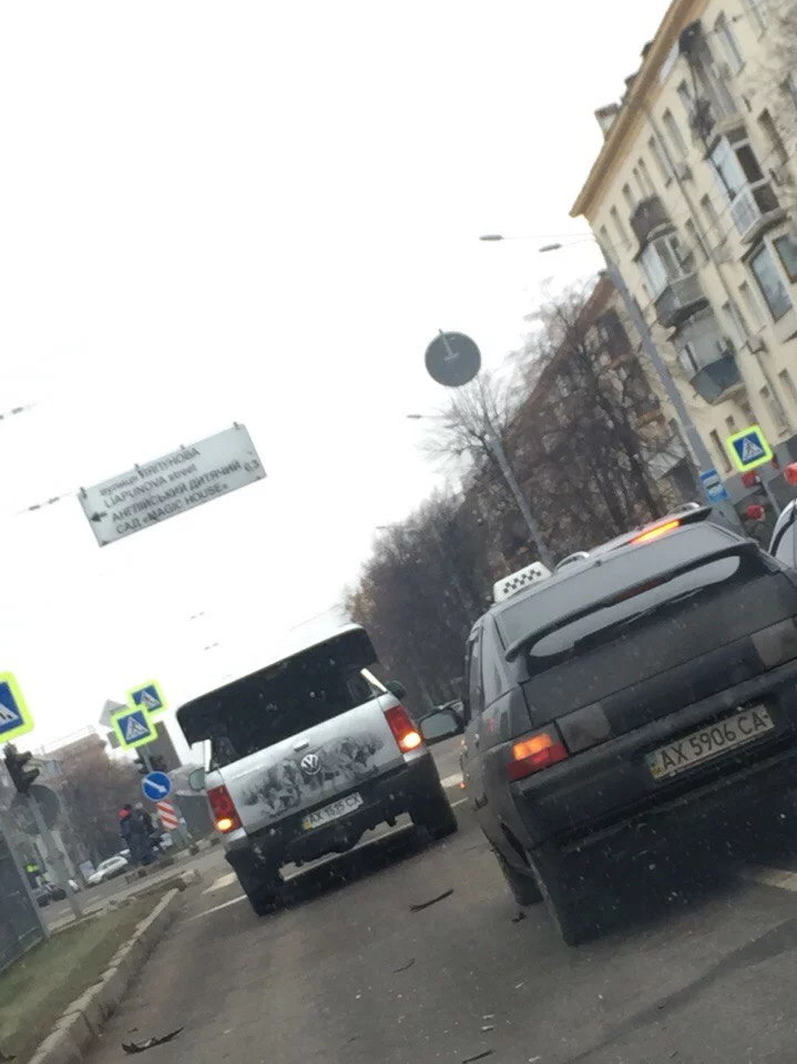 другое дело что амарок либо явно ехал прямо, либо, увидев перестраивающегося таксюка, передумал тормозить и ускорился, шо б уж наверняка.