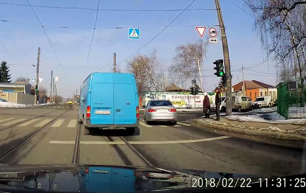привет оленю на синем транзите AX 4529 EC который по веринской вывалился на рельсы почти перед капотом, естественно без поворотника, и естественно перестраивался в правую полосу также без поворотника..