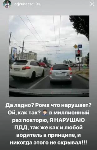 Сам блогер на своей странице в Instagram косвенно подтвердил факт несоблюдения правил дорожного движения.