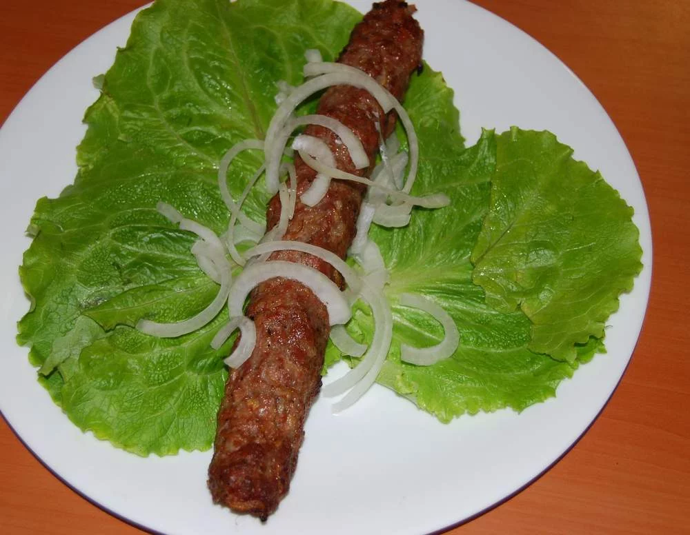Формируем из фарша шарики где-то с кулак (котлетка) и нанизываем на шампур постоянно рукой разминая фарш вокруг шампура, при этом шампур вращая. Идея сформировать сардельку так, чтобы вышел весь воздух внутри и мясо плотно облегало шампур. Чтобы мясо легко формировалось в руке и не прилипало - смачиваем руки в теплой воде. Можно немного приплюснуть готовую сардельку (постараться, чтобы много мяса по бокам не свисало), кончики подкрутить. Итак на шампур помещается обычно две такие сформированные "сардельки".