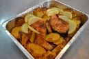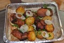 К мясу можно подать также приготовленный в тандыре картофель (сделаны надрезы как серпантин, с специями и переложенный кусочками сала между собой).
