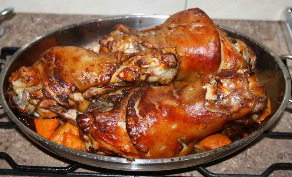 Спорный рецепт. Особенно с чесноком, который варится 3 часа. И в пиве не вижу особой нужды. А вот таких овощей, как морковь и сельдерей добавить нужно. Я смазываю рульку чесночной кашицей после обжарки.