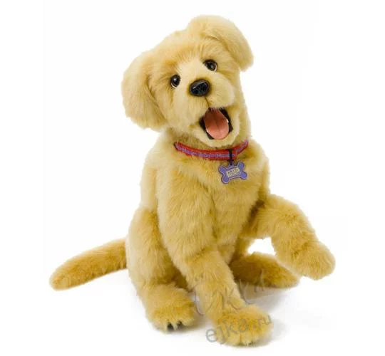 Щенок выполняет команды (на русском языке) — «Лежать», «Сидеть», «Служить», «Дай лапу», «Голос», любит погрызть свою косточку, двигает ушками, мордочкой, носиком, моргает глазками.