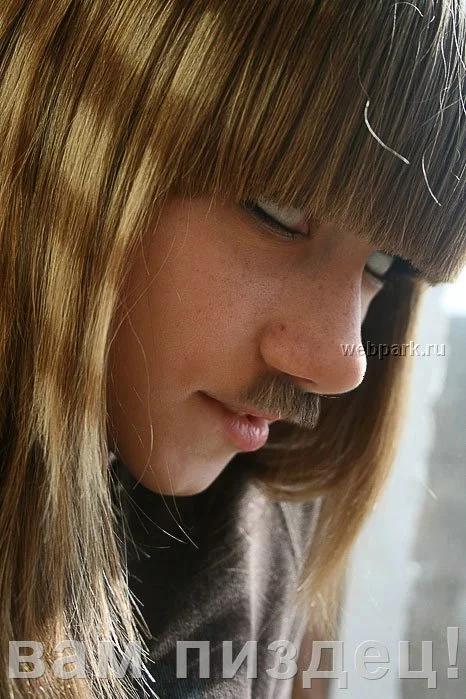 Я знаю человека, который фотошопил эту красотулю. Также знаю историю, откуда и как это всё дело просочилось на разные ****оразвлекательные порталы и прочие фишкинеты. Сто лет в обед этой фотожабе, там вообще посмешнее были в сетах. Усатая девочка в виде Михаила Круга например.