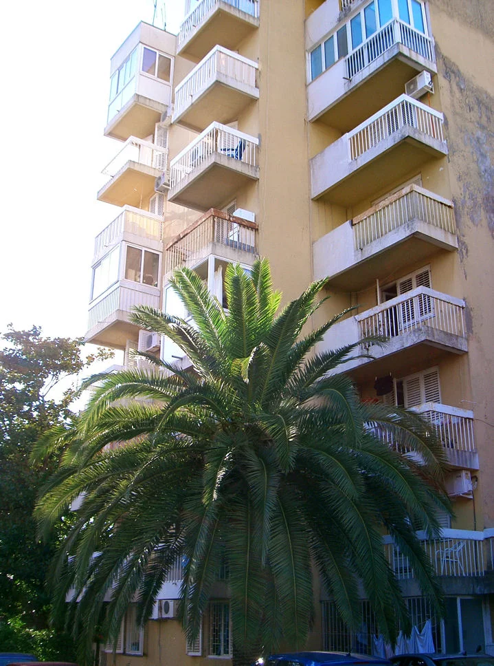 Обычный жилой дом, зато с пальмой под окнами.