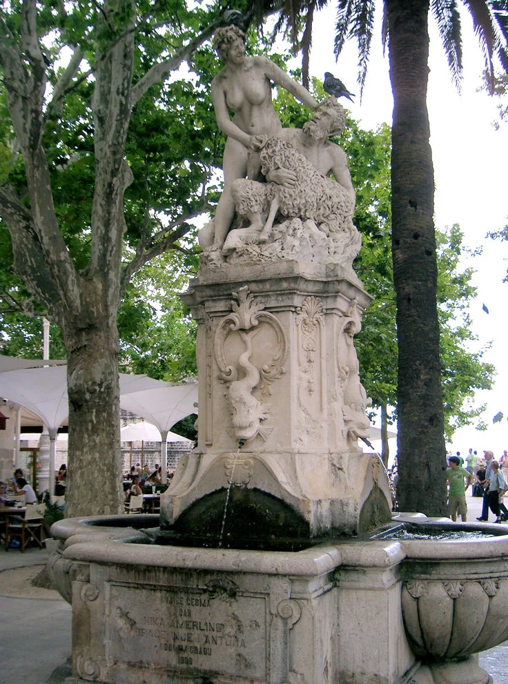 Фонтан в исторической части города. Короче, там мужик с рогами и копытами - типа кАААзёл