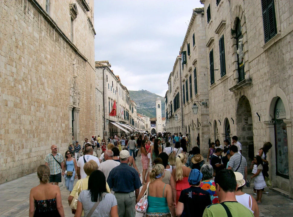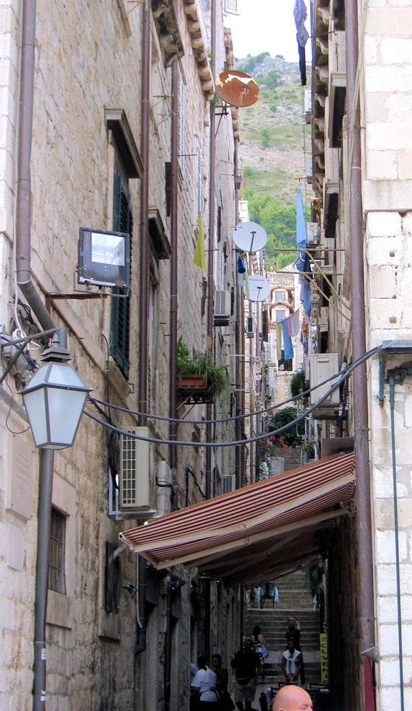 Центральная улица старого Дубровника. Туристов - туева куча. Много итальянцев (на пароме - 3 часа), французов. Чуть меньше немцев. Русских намного меньше, чем в Черногории.