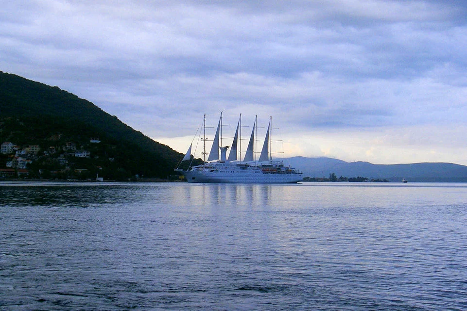 Красивый лайнер, уже Черногория по пути домой.