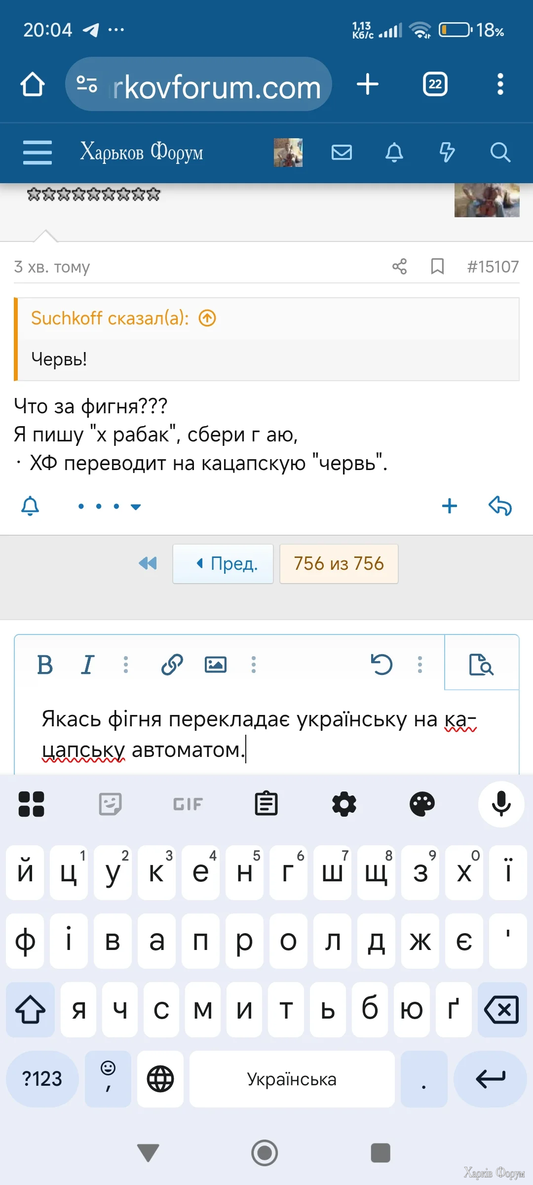 · ХФ переводит на *****скую "червь".