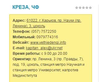 да, расчитано на то, что все по одному, чтобы потом ничего не доказатьТЕЛЕЖНЫЙ АЛЕКСАНДР ЮРЬЕВИЧ 1966-05-11 ХАРКІВ ПУШКІНСЬКА 18, 3 адрес директора и машина "кап алекс" там рядом стоит, у меня та же херня была, просто не надо быть лохом и всегда заходить со свидетелями, несмотря на неспроста повешенную табличку "входить по одному".