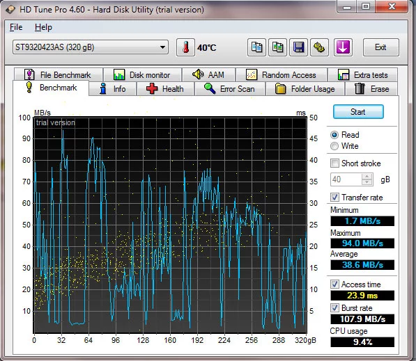 При помощи HDDTune сделал график, он еще более подозрителен чем перемещенные сектора, прикреплена картинка.