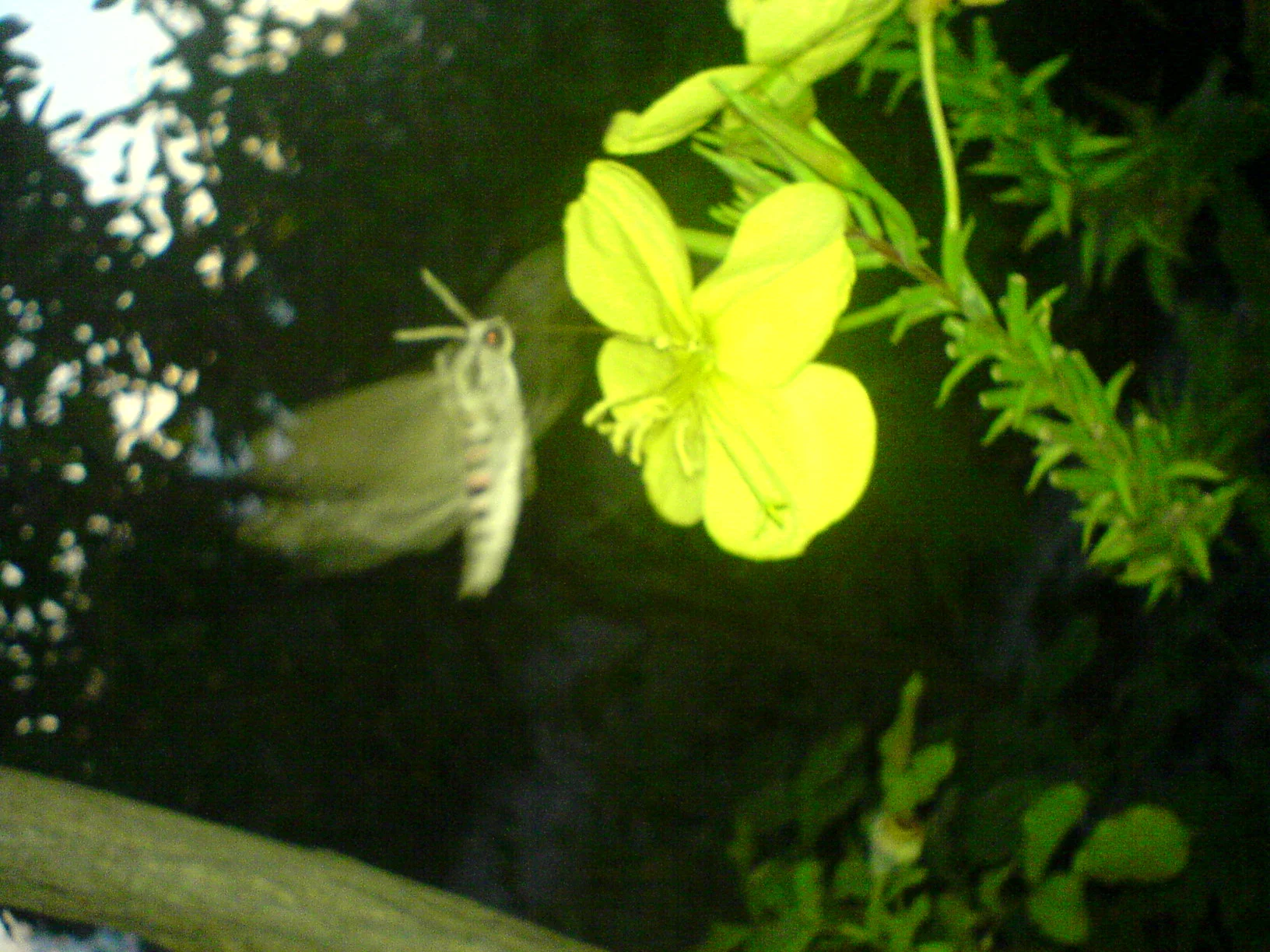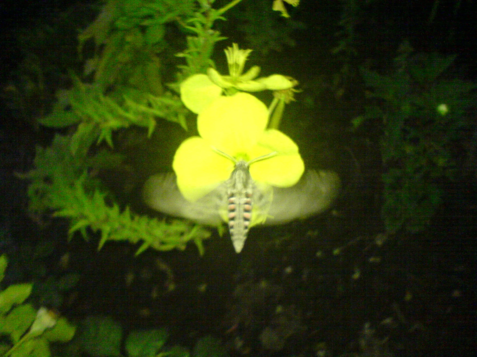 Гусеница зеленовато-желтая с голубыми и черными косыми полосками, с изогнутым рогом на последнем сегменте брюшка, в длину достигает 12 см. Встречается на картофеле и других пасленовых в июле-августе.