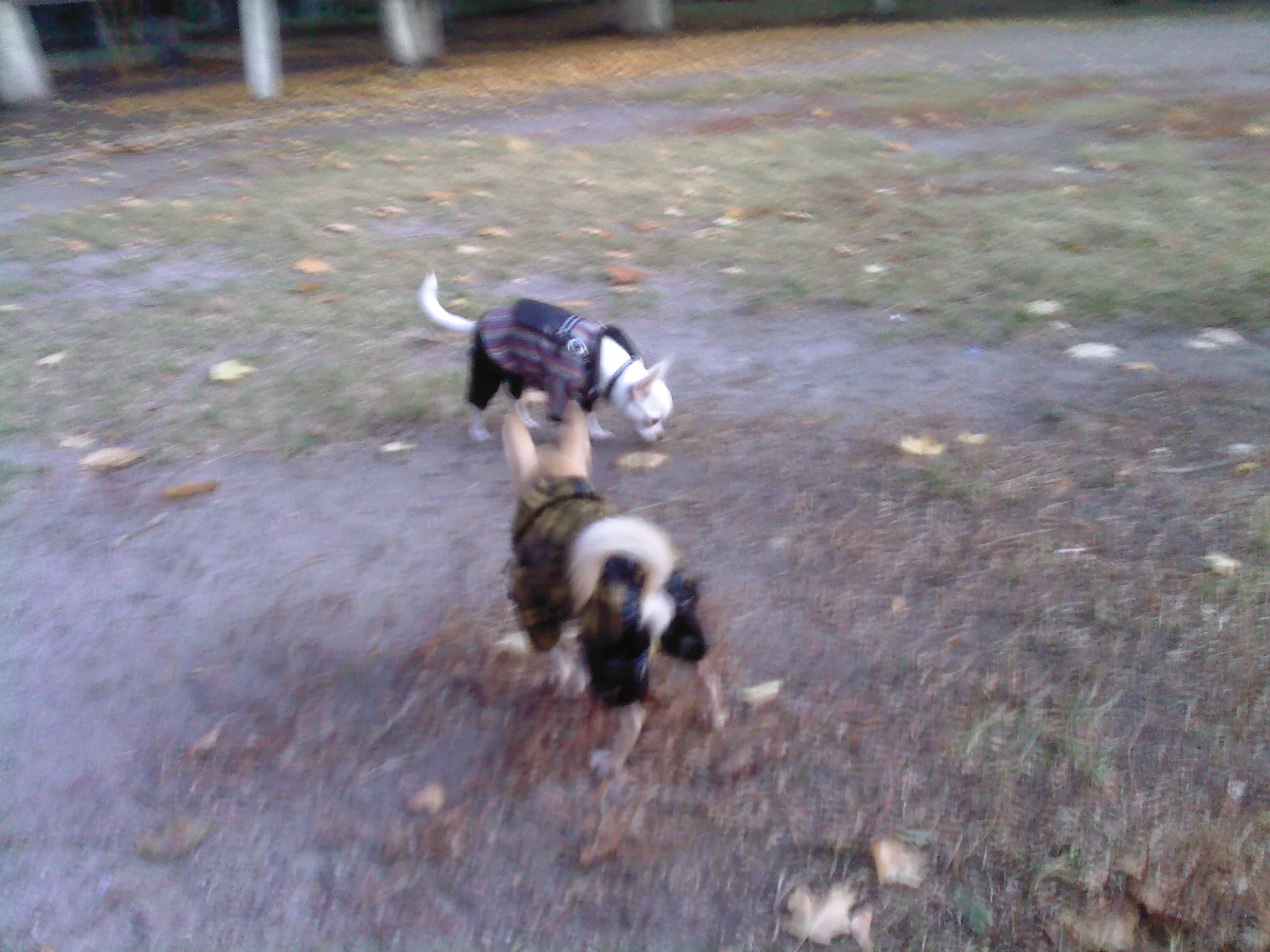 Фила одевают в толстовочки, потому что он тоже бегает и особо не мерзнёт. А остальные наши друзья уже утеплились конкретно - костюмчики на флисовых подкладках.