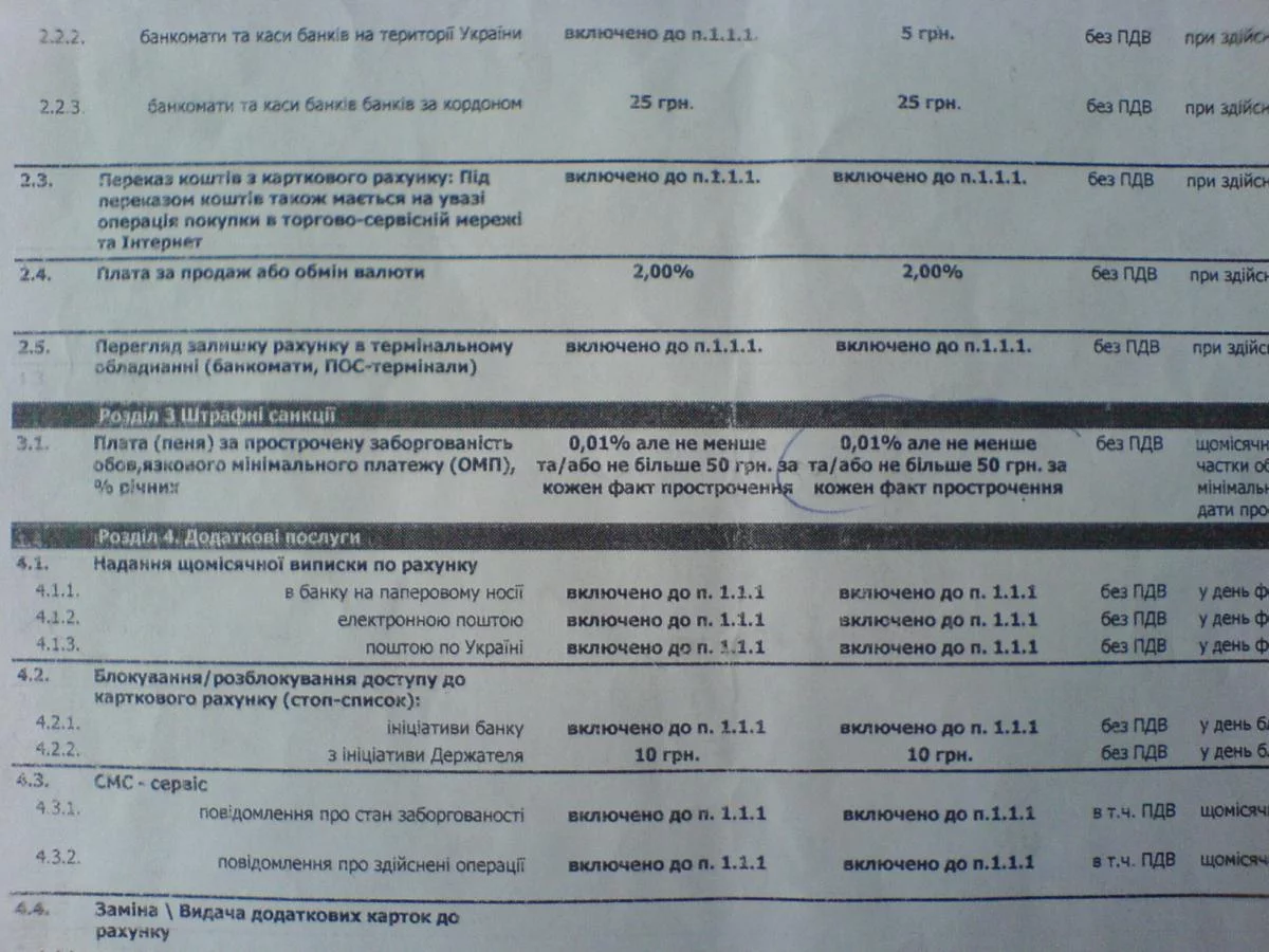 О том как хитро составлен ключевой для этой схемы пункт 3.1 о штрафах вы можете судить сами по фото. Формулировка достойна книги рекордов Украины. Устно клиенту обещают брать 0,01% от суммы. Это копейки. А реально берут 50грн за каждое нарушение. И молчат об этом до поры.