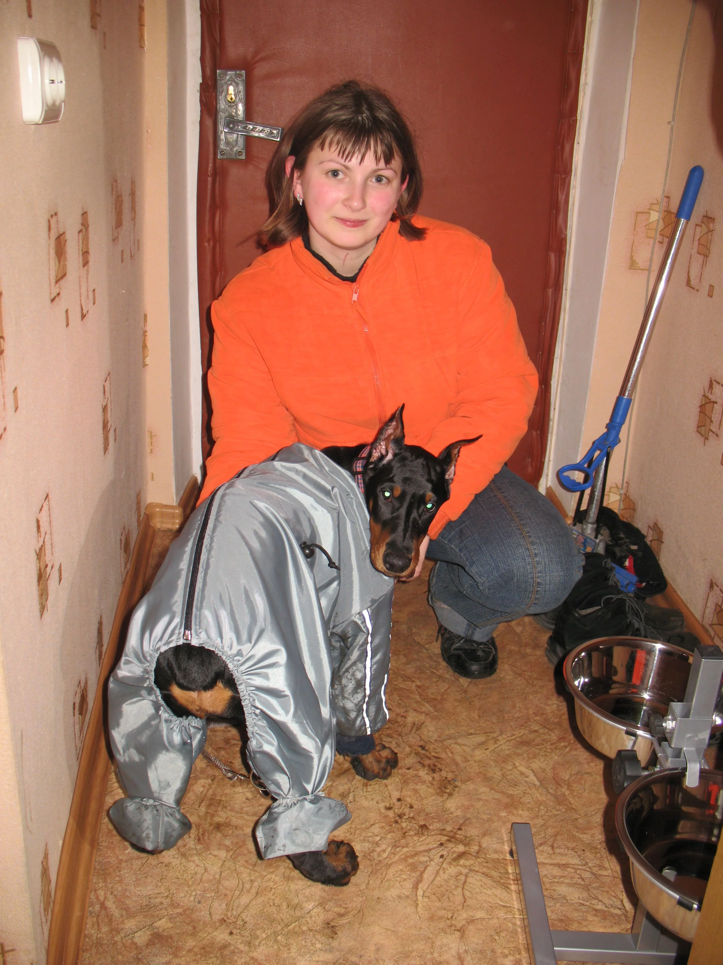 Аля хорошулька и комбезик ей идет,и в шею хозяйку уже поцеловала.....вобщем нормальный доберман
