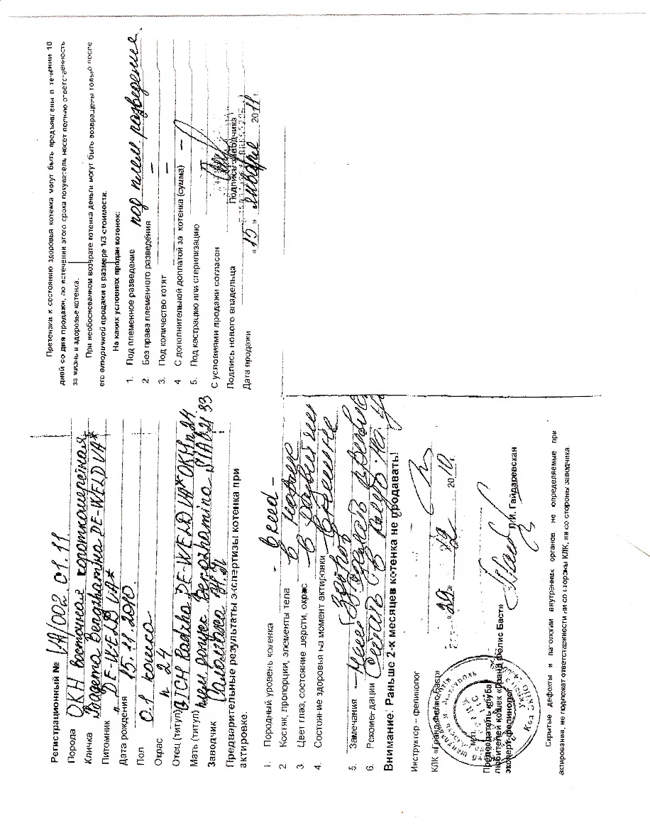 ТС что-то не стыковка котенок прожил у Вас 3месяца какие могут быть претензии к заводчику?И где карточка болезни котенка она должна быть,только не выписка компьютерная выданная задним числом?А написанная от руки и заверенная мокрой печатью врача,клиники.А так же что-бы врач смог подтвердить все если потребуется.