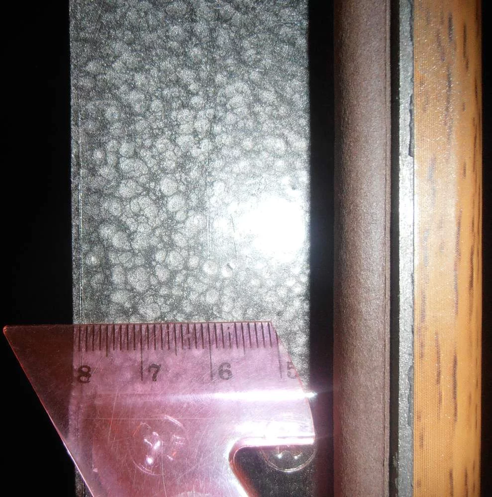 Глядя на торец двери создается ощущение, что лист тонковат, но когда выкрутил глазок убедился, что лист действительно 2мм, просто он немного утоплен в дверную раму.